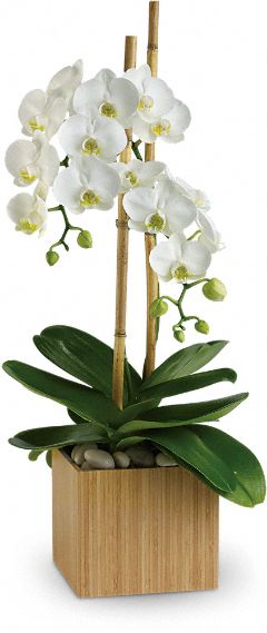 flowers in Renewable resources bamboo box vases in bed or two tone roses.